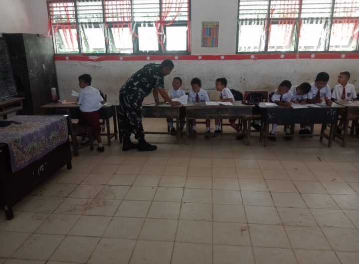 Tapteng_Babinsa Koramil 05/Kolang Kodim 0211/TT Serda Kepler Situmorang melaksanakan Komsos kepada Siswa di SD Negeri 153001 Kolang...