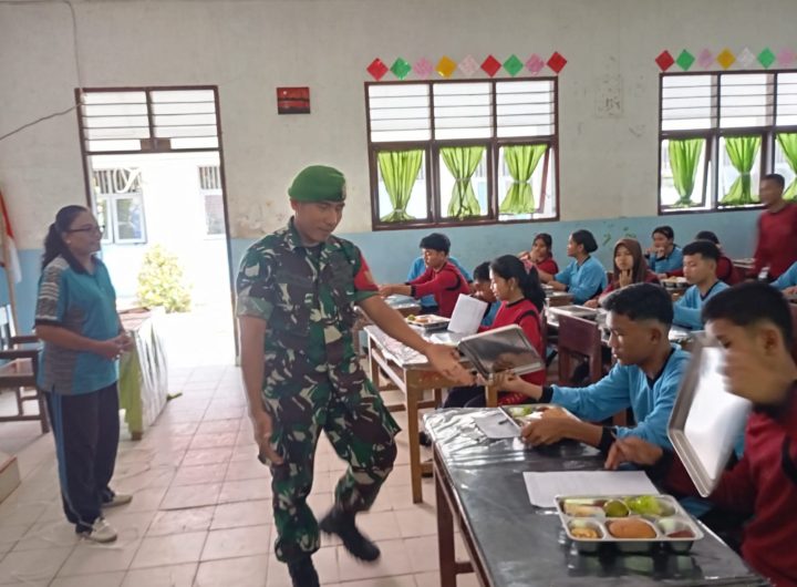 TAPTENG-Babinsa Koramil 02/Sorkam.Kodim 02/11 Tapteng. Serda Agus Tumanggor.turut serta dalam pendampingan Pendistribusian Makan Bergizi Gratis yang di...