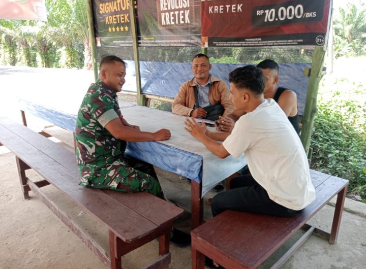 Bajamas_ Babinsa Koramil 01/Barus melaksanakan komunikasi sosial (Komsos) bersama dengan warga di warung bapak resta limbong di...