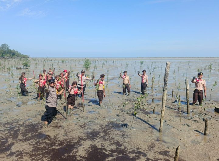 Green Policing di Rangsang Pesisir: Polres Meranti dan Pramuka Tanam Mangrove Cegah Abrasi