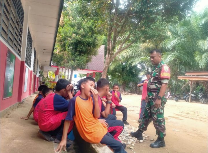Tapteng_Babinsa Koramil 05/Kolang Kodim 0211/TT Sertu Gibson Pasaribu melaksanakan Komsos kepada Siswa di SMP Negeri 1 Kolang,...