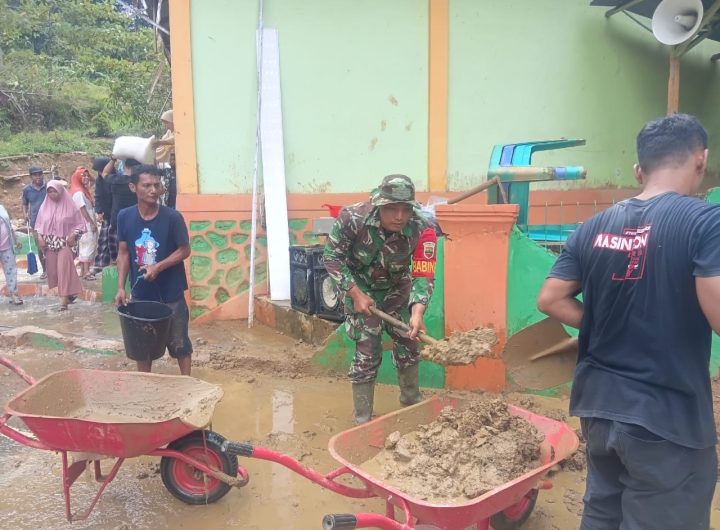 TAPTENG _ Sebagai wujud kepedulian dan kebersamaan dengan masyarakat binaan pasca bencana, Babinsa Koramil 05/Kolang Serda Abdul...