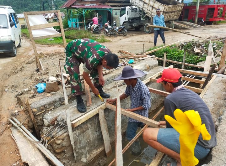 Tapteng-Babinsa Koramil 03/Pandan Kodim 0211/TT Serma Freddy Siahaan bersama warga melaksanakan Karya Bakti membangun jalan setapak yang...