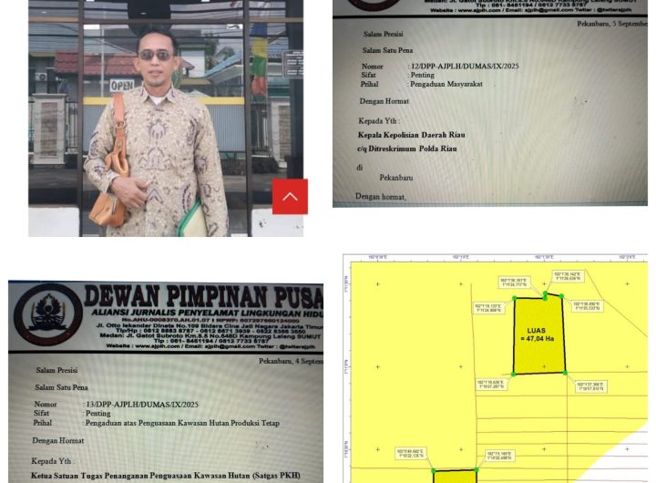 PEKANBARU –Sebelumnya Selasa 09/09/2025 Aliansi Jurnalis Penyelamat Lingkungan Hidup (AJPLH) secara resmi melaporkan tiga saksi Yuni Hartati...