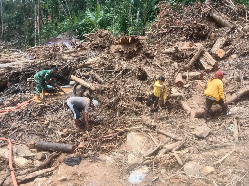 Desa Bair, Tapanuli Tengah – Pada hari Sabtu, 06 Desember 2025, pukul 08.00 WIB, Babinsa Koramil 05/Kolang, Serda Armin Simanjuntak, mengerahkan warga untuk melakukan pencarian korban yang hilang akibat tanah longsor di Desa Bair, Kec. Tapian Nauli, Kab. Tapanuli Tengah.