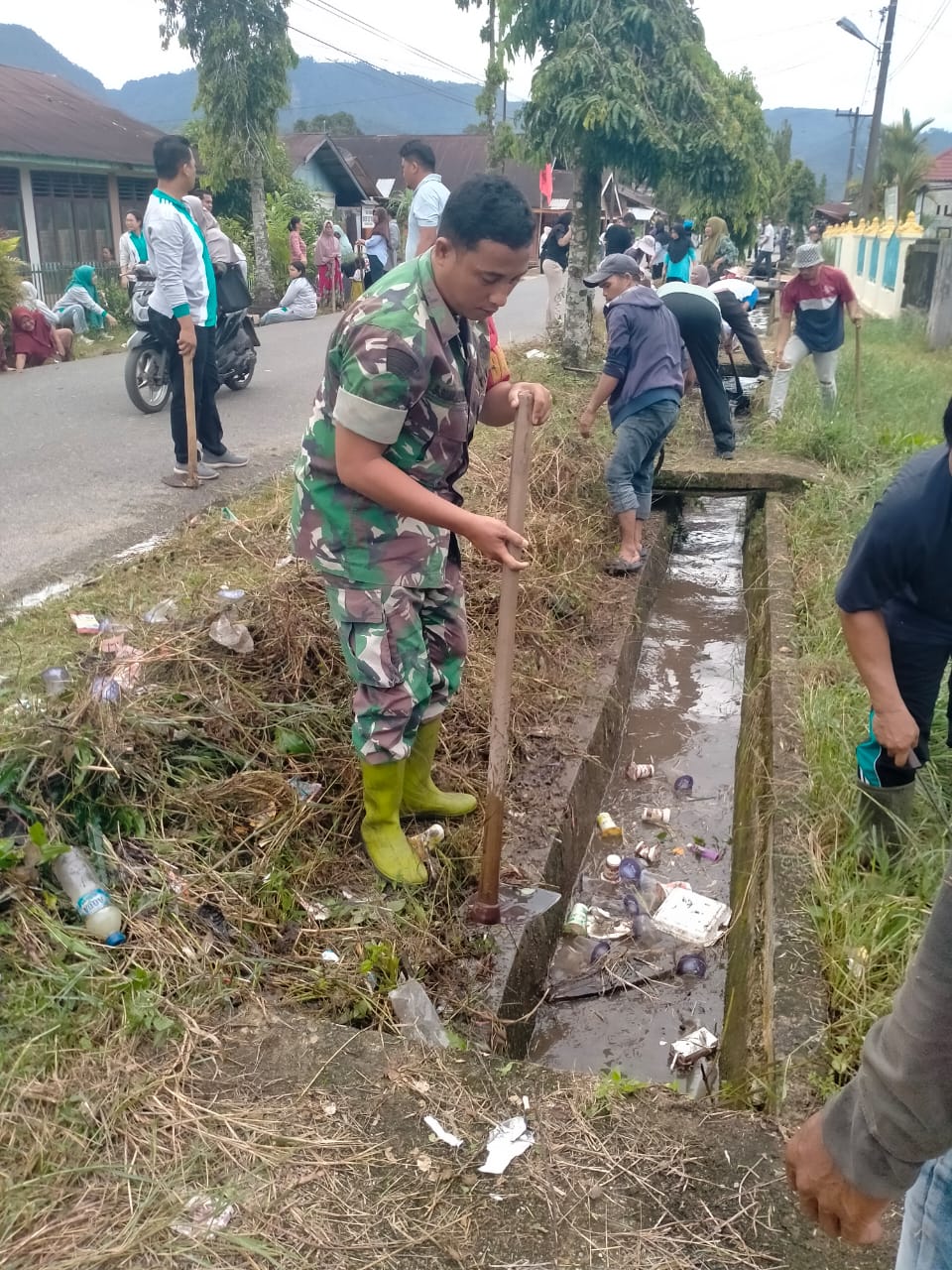 “TNI selalu berupaya memberikan bantuan kepada warga yang kesulitan, seperti halnya turut gotong royong pembersihan jalan dan parit , itu menjadi proritas TNI dilapangan”, pungkasnya