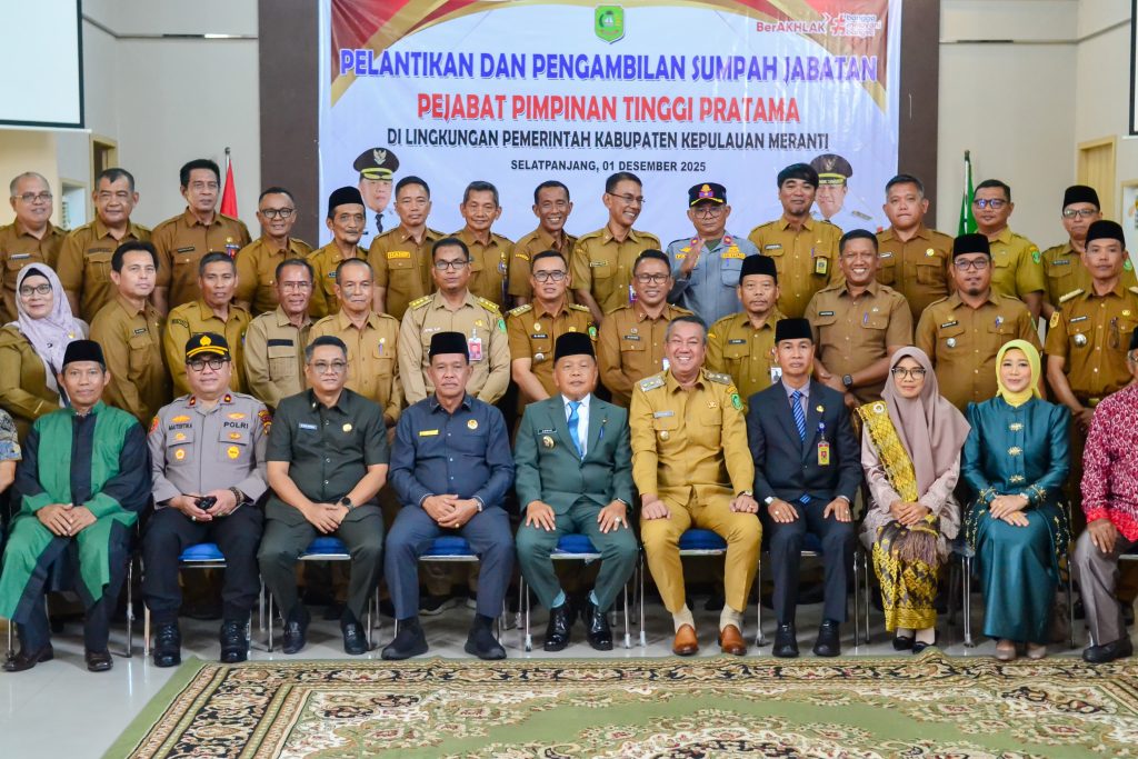 Liputan24jam. MERANTI – Bupati Kepulauan Meranti AKBP (Purn) H. Asmar, Senin (1/12/2025), resmi melantik dan mengambil sumpah Sudandri, SH sebagai Sekretaris Daerah (Sekda) Kabupaten Kepulauan Meranti. Pelantikan berlangsung di Aula Kantor Bupati, Jalan Dorak Selatpanjang.
