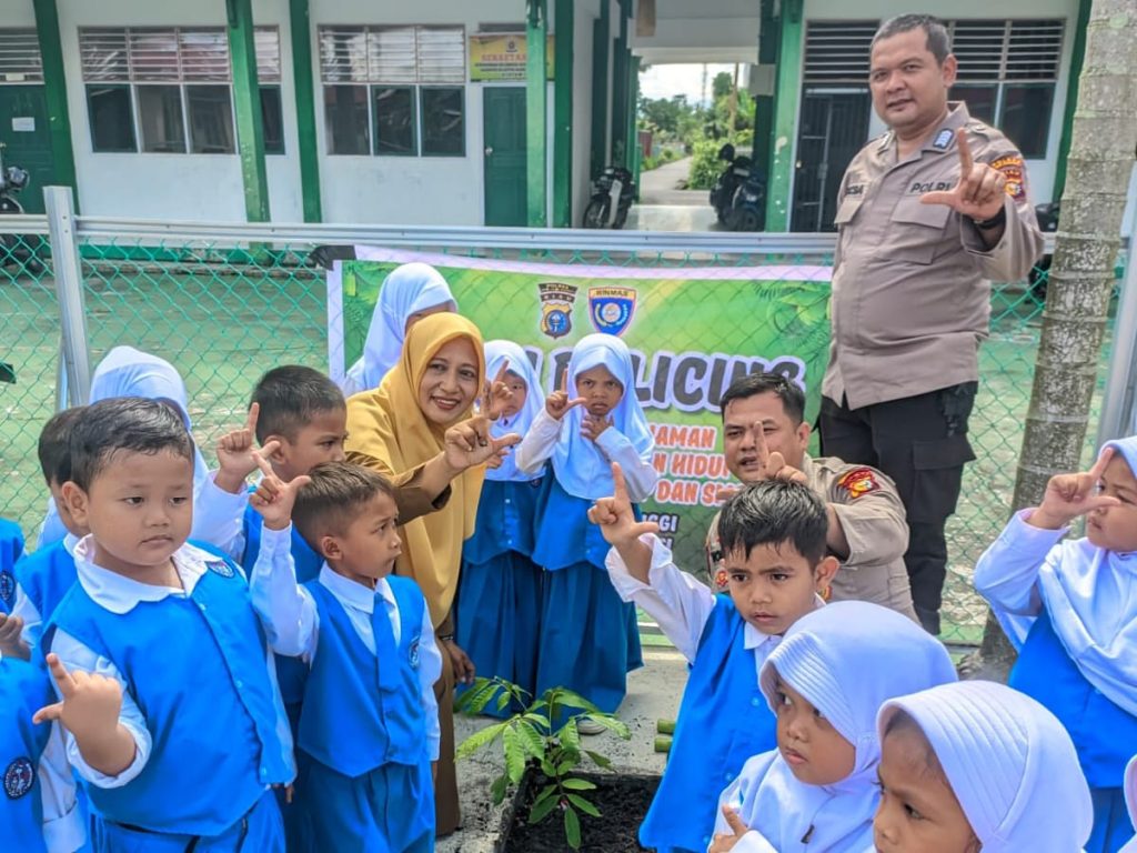 Green Policing Polres Kepulauan Meranti berupa penanaman pohon di Taman Kanak – Kanak (TK) dan Paud Oleh Polsek Tebing Tinggi, Polsek Rangsang dan Polsek Merbau Senin 22 Sepetember 2025.
