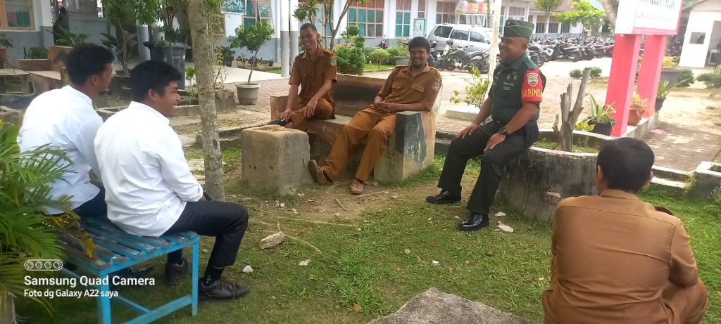 Tapteng – Babinsa Koramil 05/Kolang Kodim 0211/TT Serka Agus Triono melaksanakan kegiatan Komsos dengan tenaga pengajar di SMA Negeri 1 Kolang, Desa Unte Mungkur I, Kecamatan Kolang, Kabupaten Tapanuli tengah. Kamis (09/10/2025)