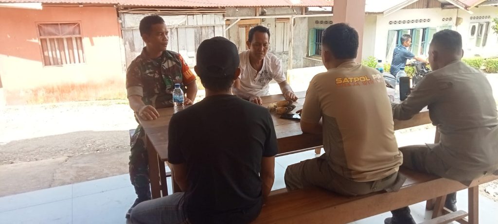 TAPTENG _Babinsa Koramil 05/Kolang Kodim 0211/TT Sertu Haidir Nainggolan melaksanakan kegiatan Komsos dengan aparat Desa di Desa Tapian Nauli IV, Kecamatan Tapian Nauli, Kabupaten Tapanuli Tengah. Sabtu (11/10/2025)