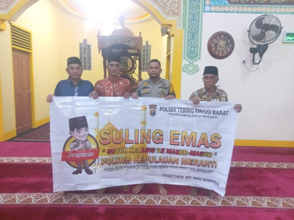 Pada kesempatan tersebut, kegiatan Suling Emas dilaksanakan secara serentak di sejumlah tempat ibadah di wilayah Kepulauan Meranti. Untuk tingkat Polres, kegiatan berlangsung di Masjid Al-Inayah Jalan Alah Air, Selatpanjang.