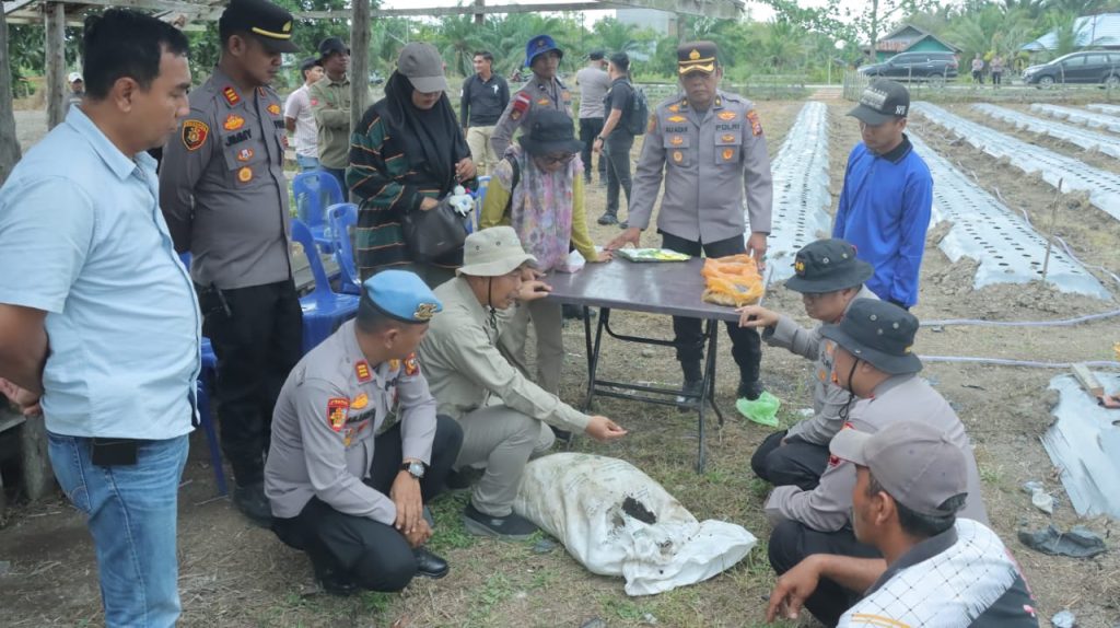 Liputan24jam. Meranti – Kapolres Kepulauan Meranti, AKBP Aldi Alfa Faroqi SH SIK MH, meninjau lahan penanaman jagung pipil yang menjadi bagian dari Program Ketahanan Pangan Polri di Desa Bagan Melibur, Kecamatan Merbau, Minggu (5/10/2025) siang.