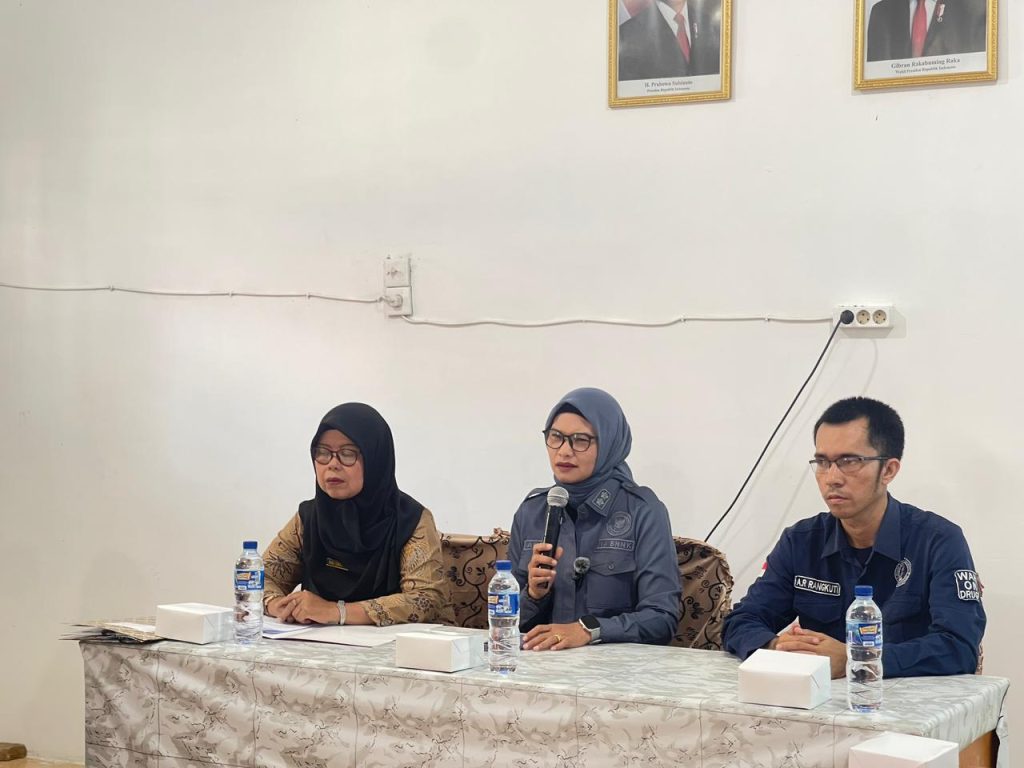 BNN Kabupaten Batu Bara juga menghadirkan Narasumber atau Pemateri dari Badan Kesatuan Bangsa dan Politik (Kesbangpol) Kabupaten Batu Bara Ibu Rina Sirait, S.P., MP selaku Kepala Bidang Kesatuan Bangsa Badan Kesbangpol Kabupaten Batu Bara. Ibu rina menjelaskan bahwasanya telah melakukan berbagai Upaya dari Implementasi Permendagri Nomor 12 Tahun 2019 yaitu Penyusunan RAD, Pembentukan Tim Terpadu P4GN dan Sosialisasi Bahaya Narkoba di Desa-Desa.