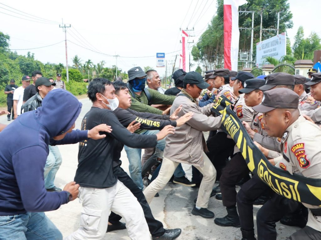 Kapolres bersama tokoh masyarakat turun langsung menemui pengunjuk rasa, menegaskan bahwa aspirasi akan ditindaklanjuti sesuai prosedur hukum dan meminta agar massa tidak terprovokasi.