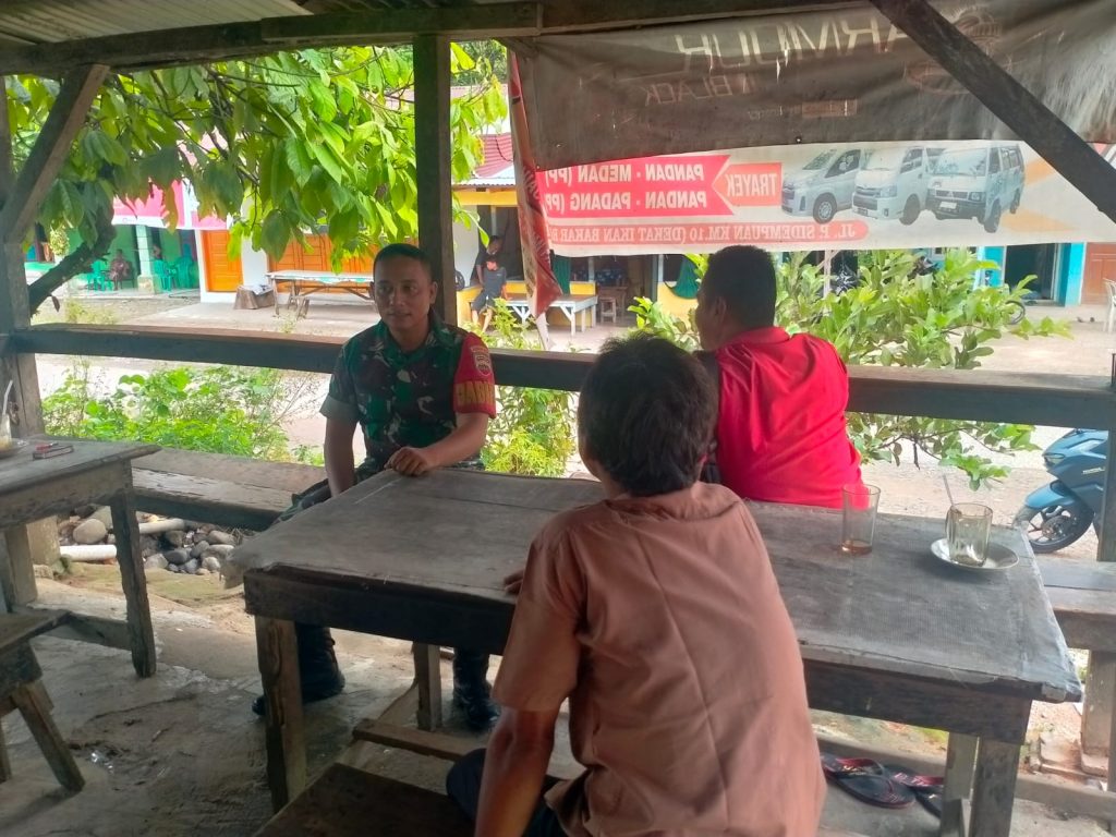Tapteng-Babinsa Koramil 03/Pandan jajaran Kodim 0211/TT Sertu Sapran Simanjuntak melaksanakan Komunikasi Sosial (Komsos) bersama masyarakat Desa Sigiring giring, Kecamatan Tukka, Kabupaten Tapanuli tengah, dengan tujuan menciptakan kedekatan bersama warga binaan, Senin (17/11/2025).