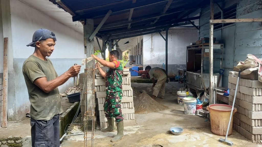 Tapteng -Babinsa Koramil 05/Kolang Kodim 0211/TT Koptu Agus Simamora membantu warga membangun pagar rumah milik warga di Desa Unte Mungkur III, Kecamatan Kolang, Kabupaten Tapanuli Tengah. Selasa (05/08/2025)