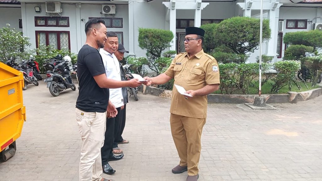 Kepala Dinas Lingkungan Hidup (DLH) Kabupaten Aceh Tenggara, Ahmad Yani, SH, MM, memberikan reward (penghargaan) kepada para supir dan kernet dump truck yang berhasil mencatat tonase angkut sampah terbanyak selama bulan Oktober 2025.
