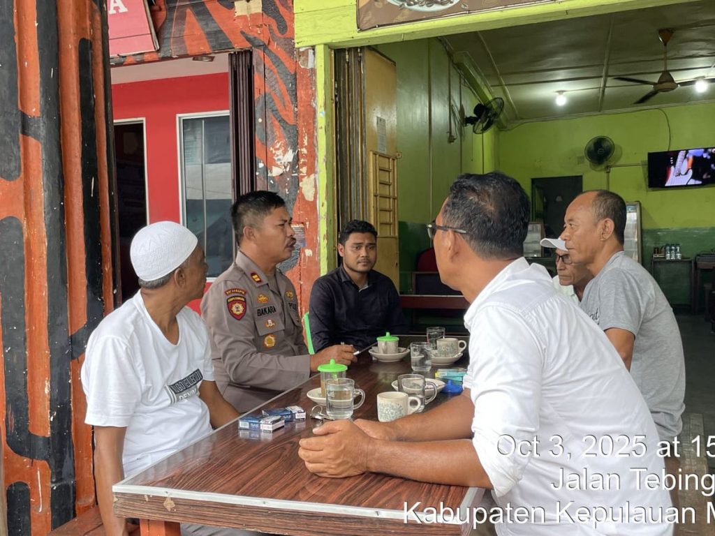 Polsek Tebing Tinggi, dipimpin oleh Kapolsek IPTU Daniel Bakara, melaksanakan pertemuan di Kedai Kopi Berkah Jaya, Jl. Tebing Tinggi, Selatpanjang. Dalam kegiatan tersebut, masyarakat diimbau agar tidak segan memberikan informasi terkait potensi gangguan kamtibmas, sekecil apapun itu.