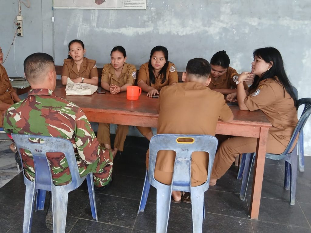 TAPTENG_Guna meningkatkan hubungan kerja yang baik di wilayah binaan Babinsa Koramil 02/Sorkam, Sertu.Kasi Elizai. melaksanakan Komunikasi Sosial(Komsos)Bersama. Aparat desa.bertempat di desa Hiteurat. Kec.Sorkam. Kb.Tapanuli Tengah