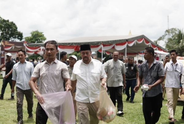 Batu Bara,Liputan24jam.com – KPU Batu Bara menggelar Deklarasi Kampanye Damai untuk Pemilihan Bupati dan Wakil Bupati Tahun 2024. Acara tersebut berjalan sukses dan meriah dengan diikuti ketiga paslon yang berkontestasi, setelah acara Deklarasi tersebut, ada momen menarik dan mencuri perhatian masyarakat banyak ketika Calon Bupati Batu Bara nomor urut 2 H.Baharuddin Siagian SH, M.Si dengan spontan atau reflek melakukan pengutipan sampah yang berserakan di tengah lapangan tempat Deklarasi dilaksanakan, Rabu (25/09/2024).