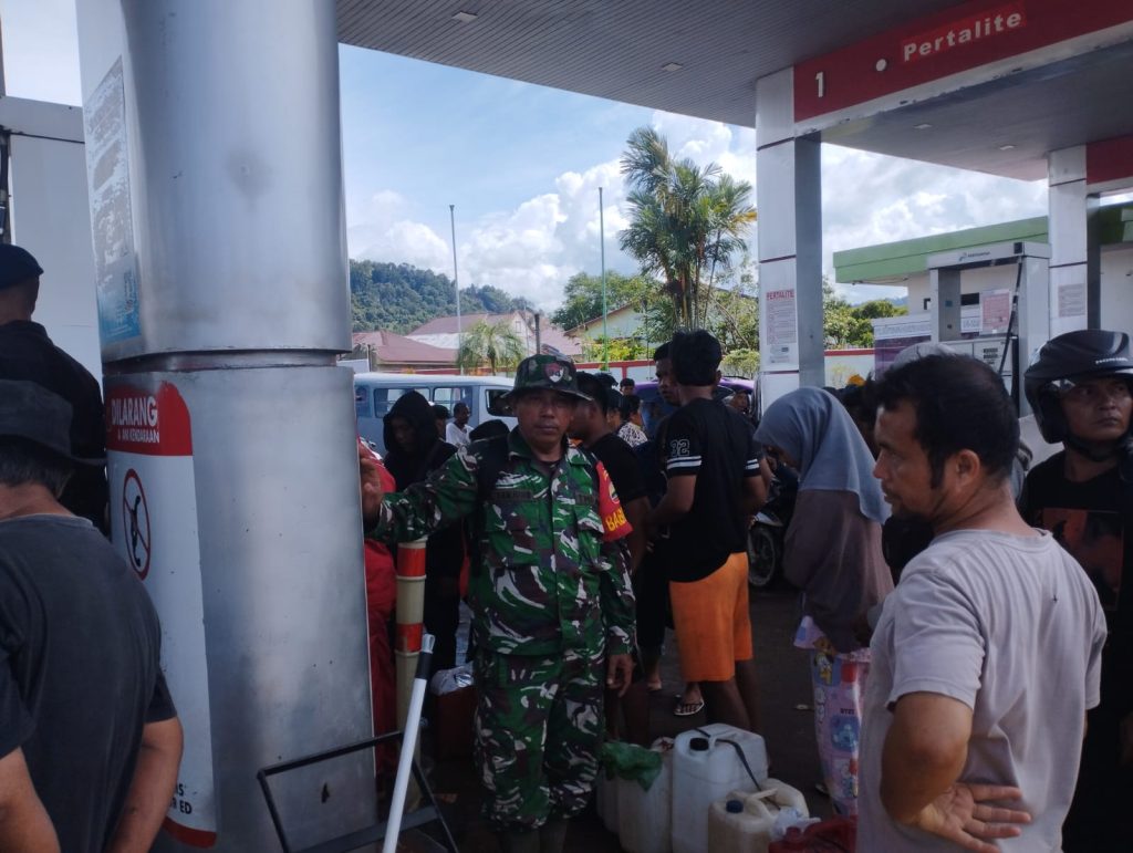 Babinsa Koramil 03/Pandan Sertu B Tanjung mengatakan pengamanan SPBU ini atas dasar perintah di karenakan telah terjadi bencana alam sehingga membuat masyarakat membludak melaksanakan antrian mengambil minyak di SPBU pandan Babinsa hadir untuk menenangkan masyarakat agar aman dan tertib. Ujar Sertu Bangun Tanjung
